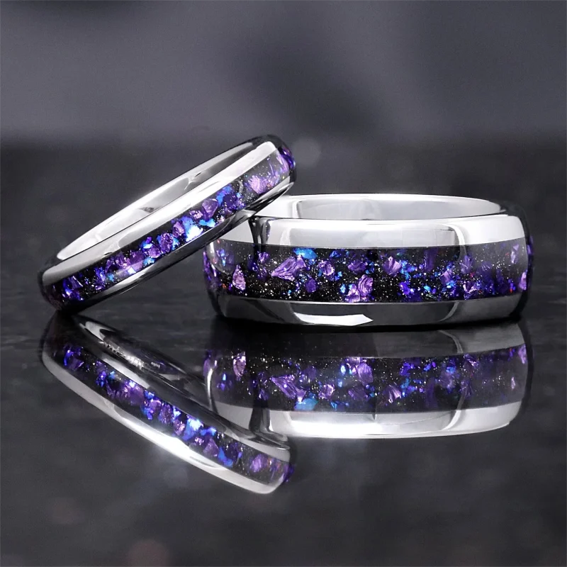 Our unique tungsten rings are sure to become a treasured keepsake. Whether you’re looking for a wedding or anniversary ring, a special gift, or just a lovely accessory for yourself, this is the perfect pick. Let the symbolism of the purple amethyst guide you,and bring a little extra luck and protection into your life.
