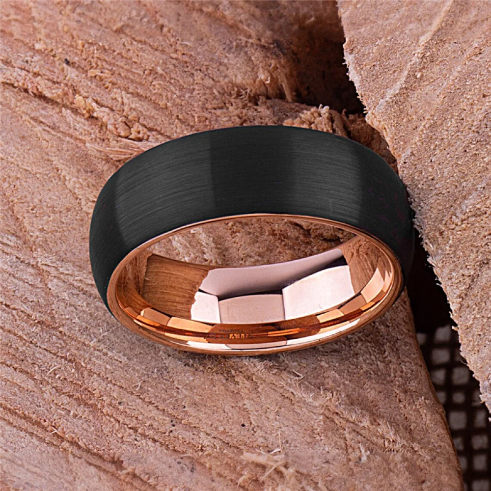 8mm Fashion Black Brushed Dome Tungsten Carbide Ring Rose Gold Plating Mens Wedding