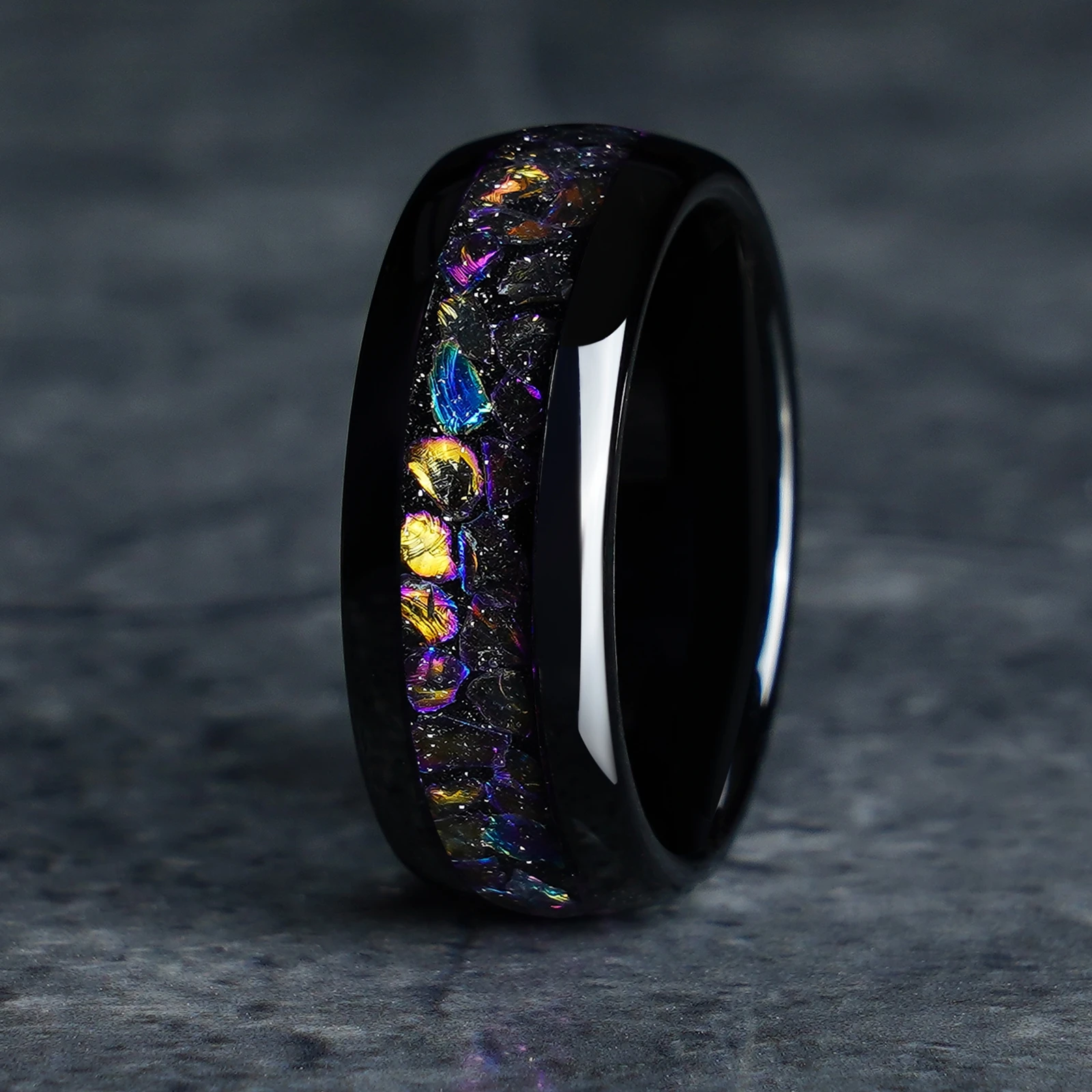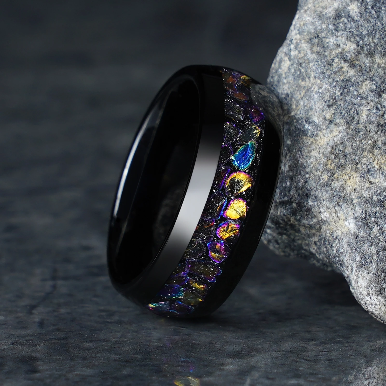 8mm Nebula Black Tungsten Carbide Rings For Men, Unique Wedding Engagement Band Birthday Anniversary Gift For Him And Her