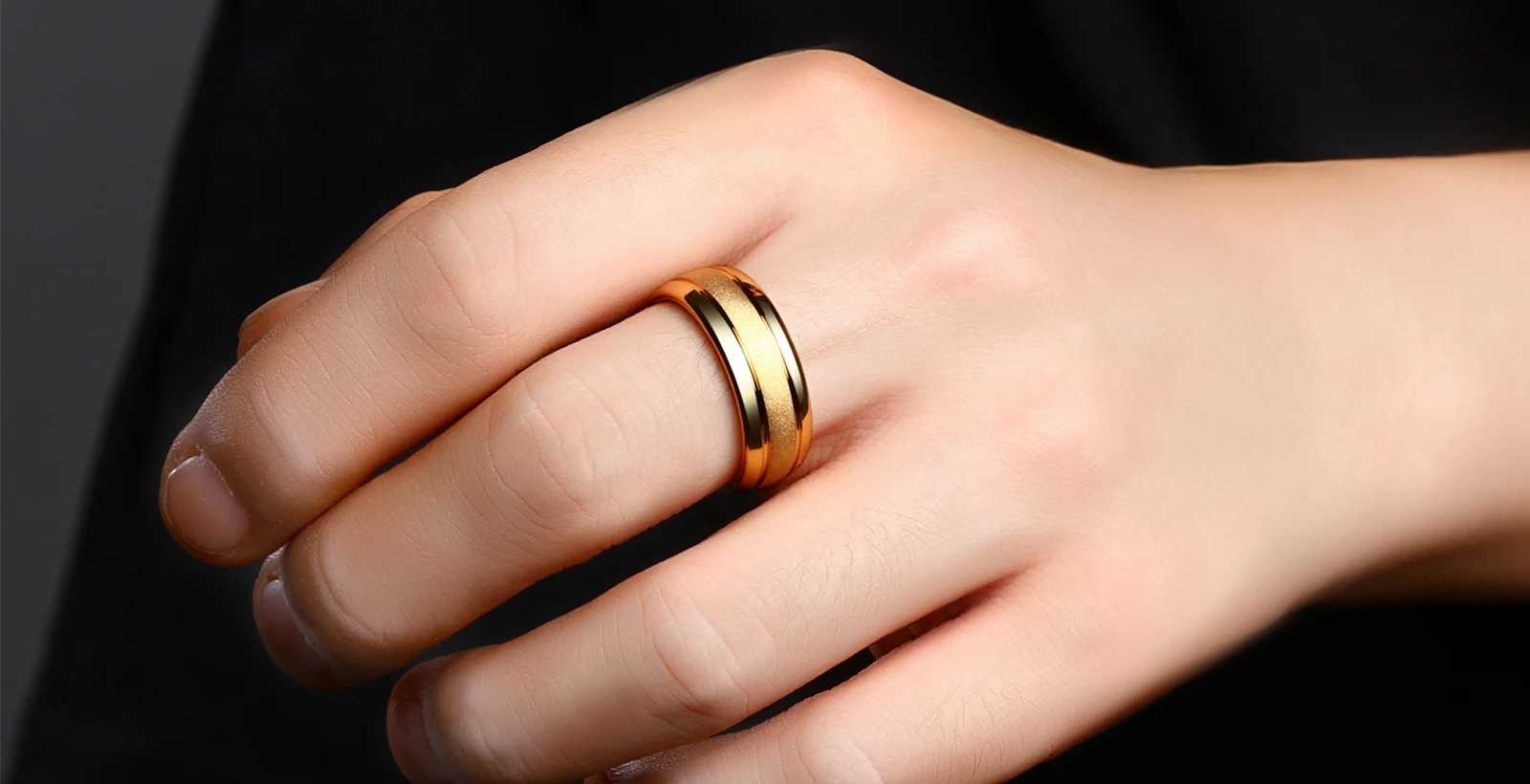 成为第一个“Men’s Golden Color Wedding Rings 8mm Tungsten Carbide Frosted Charm Jewelry for Men” 的评价者