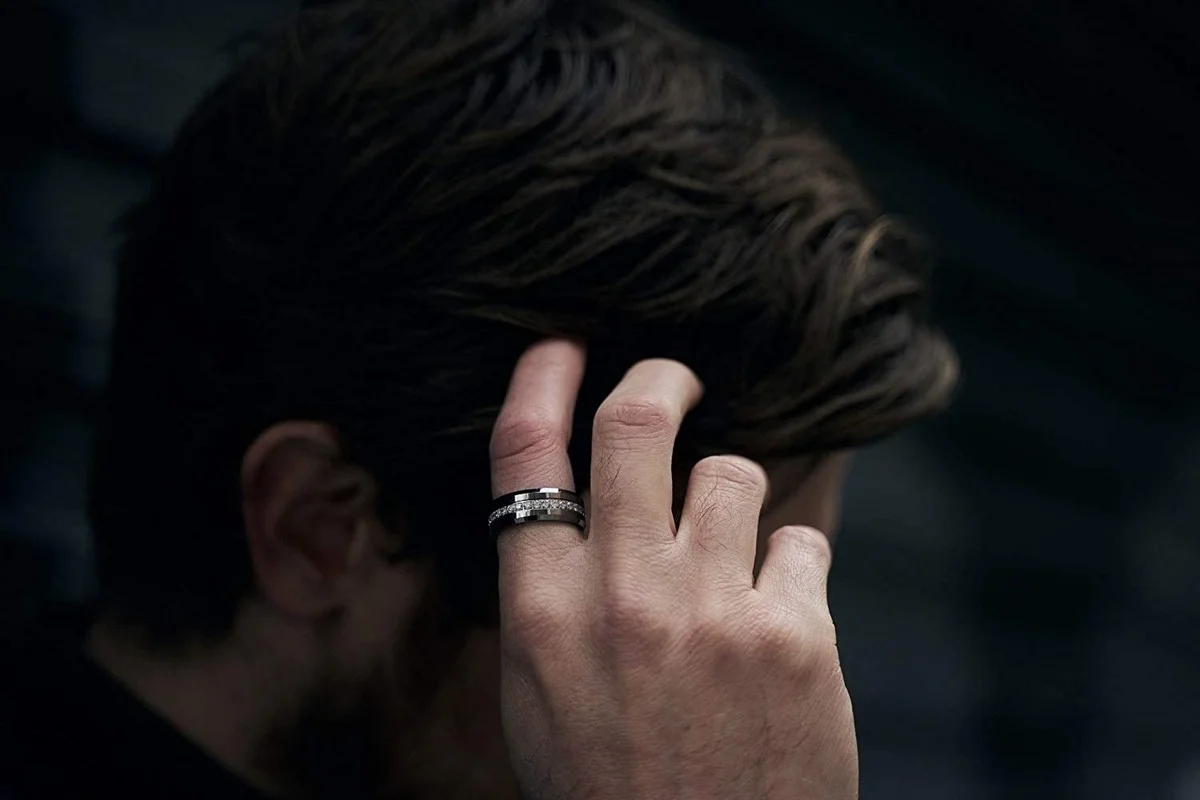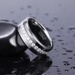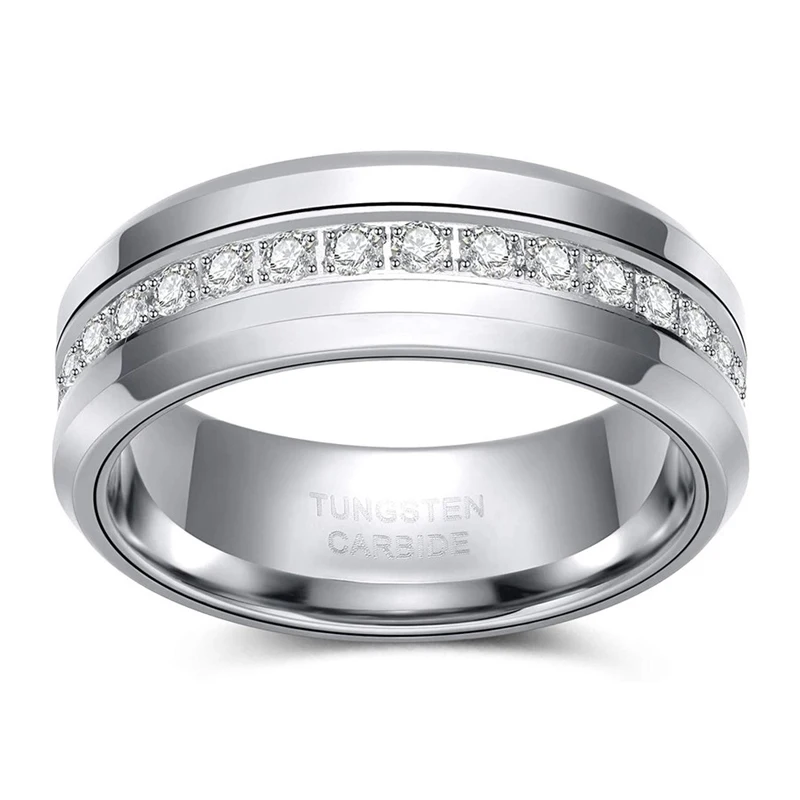 8mm Mens Tungsten Wedding Bands with Cubic Zirconia Trendy Eternity Ring Unisex CZ Inlaid High Polish