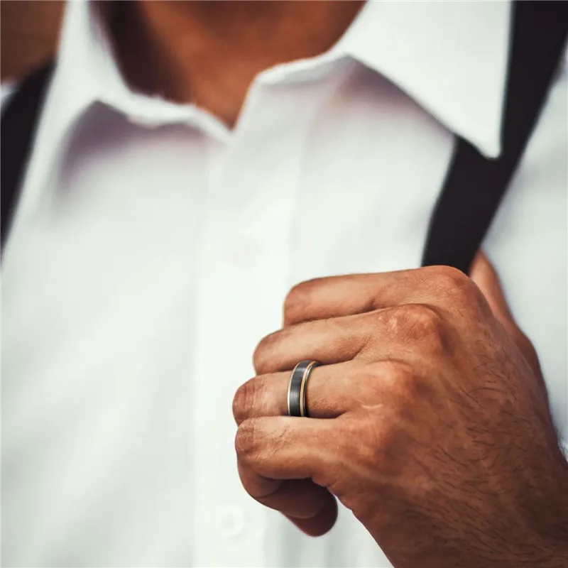 Men Rings 8mm Tungsten Wedding Band Silver Color with Blue/Gray Line Stylish Male anillos hombre Anniversary Ring