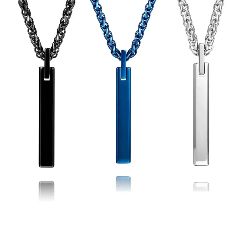 Pendant size: 5.35×41.6 mm.Tungsten jewelry does not tarnish and oxidize,